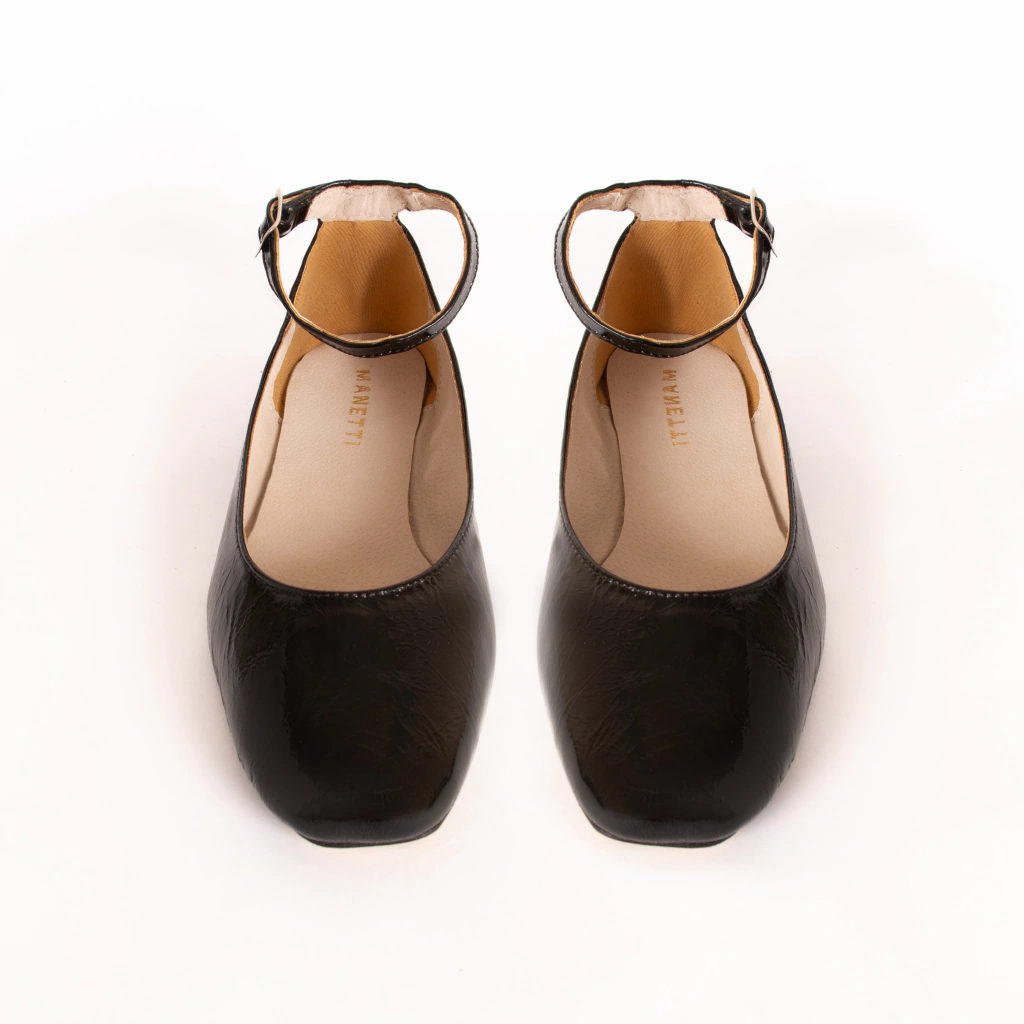 Nuestra chata Quana introduce diseño moderno y muy actual a nuestra línea de Chatas clásicas de Manetti. De punta cuadrada, pulsera super fina, cuero super dócil, y diseño sofisticado, es ideal para elevar tus outfits!